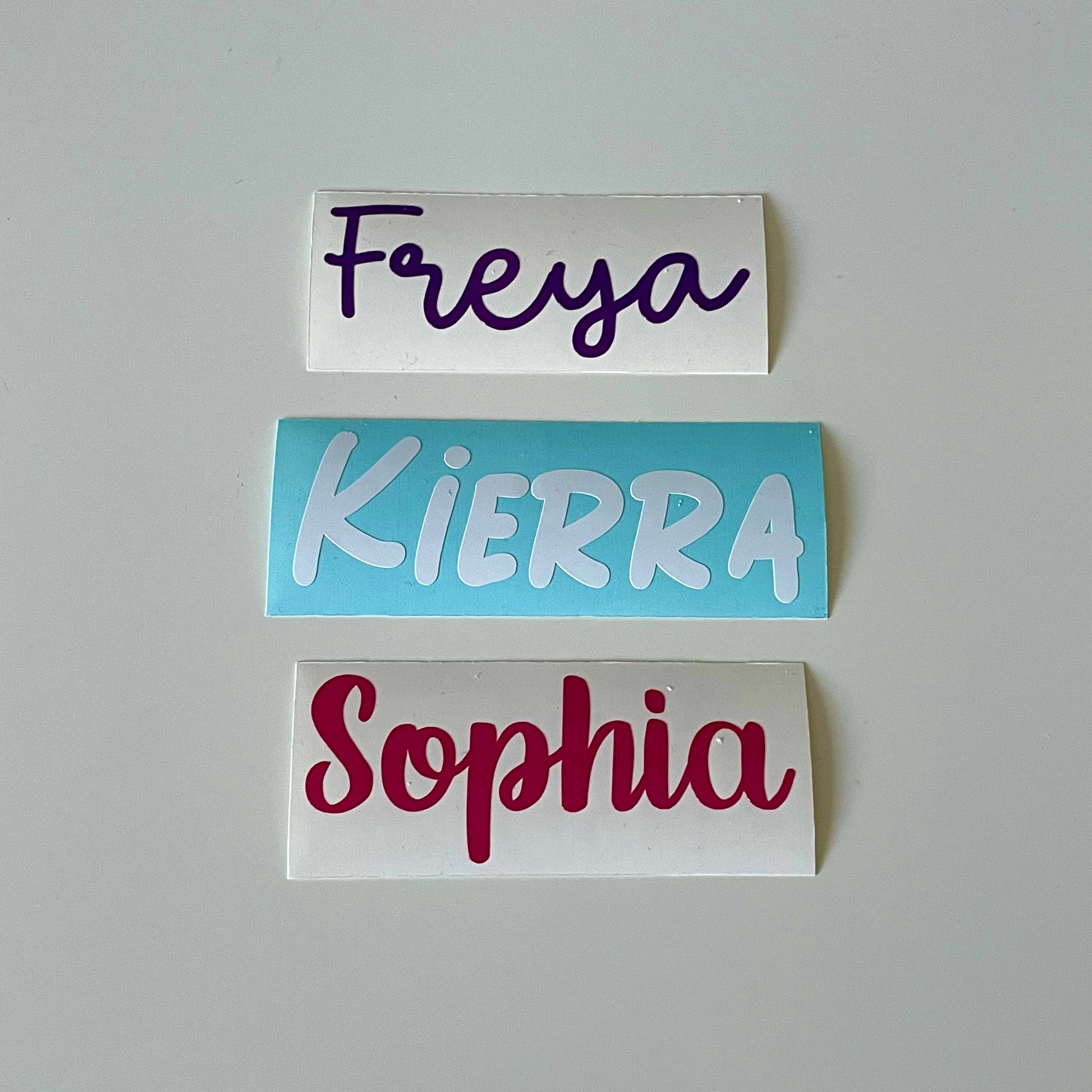 Depending on the length of the name chosen, the maximum length will be 100mm long. The height will be adjusted to this. If the name is shorter than 100mm, the maximum height of the first letter of the name will be 30mm.